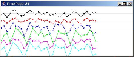 Each page displays six different sampled time series plotted horizontally with time increasing from left to right. (At this point, I will start referring to the sampled time series as traces.)